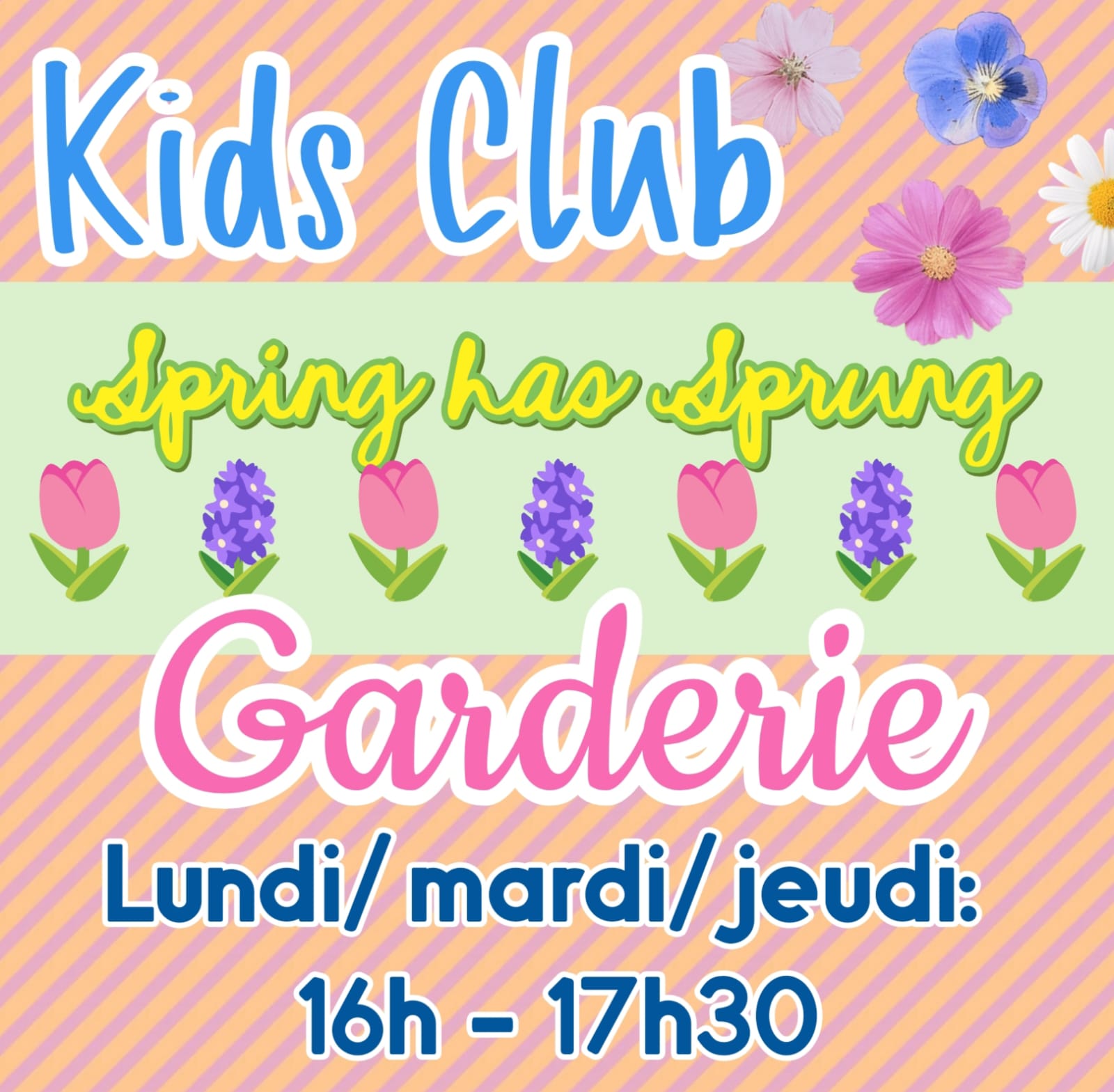La garderie est disponible de 16h à 17h30 Lundi, Mardi & Jeudi. (Pas Vendredi)